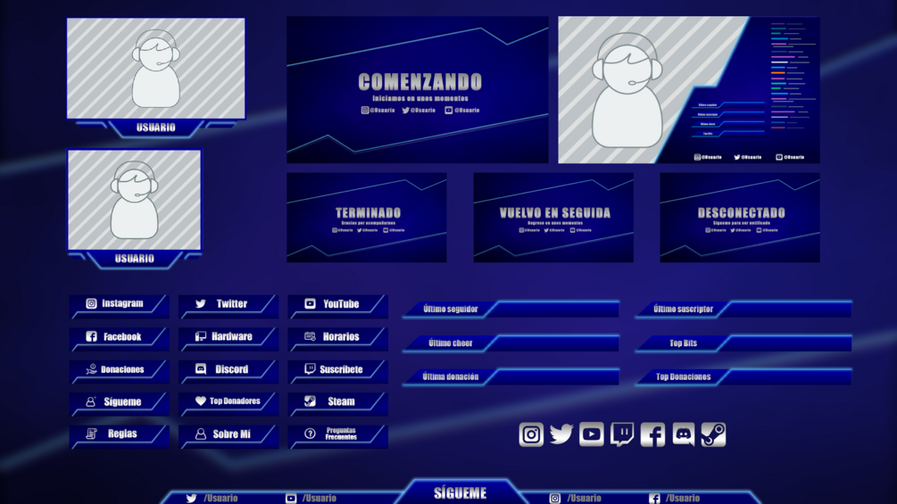Blue Wire - Pack de overlays para Twitch, YouTube y Mixer